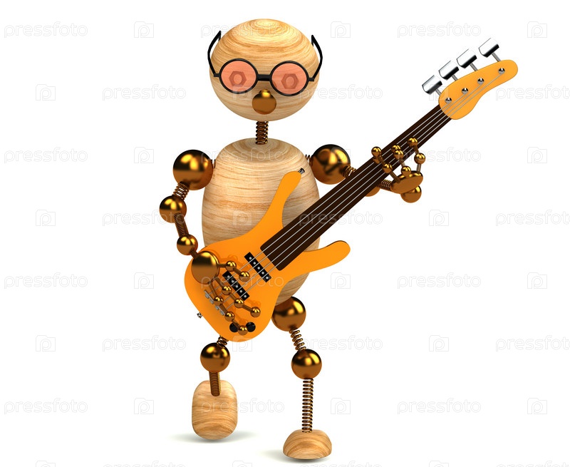 Иллюстрация с деревянным человечком, играющем на бас-гитаре