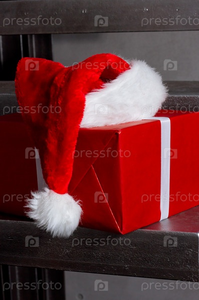 Рождественский колпак и подарочные коробки на лестнице