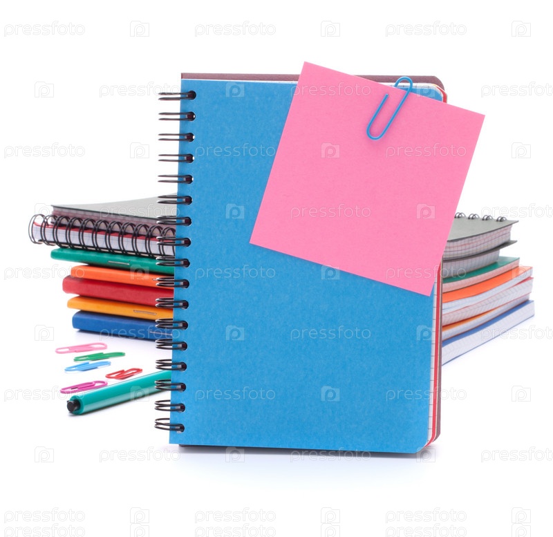 Голубой блокнот и бумага для записей