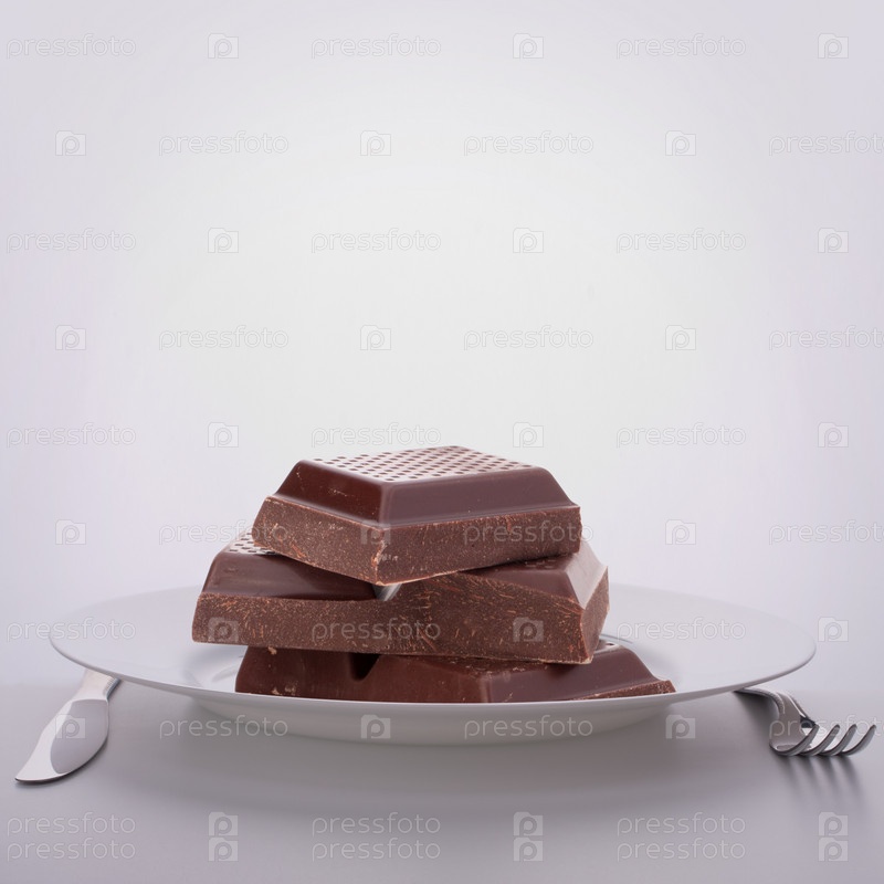 Шоколадные плитки на тарелке