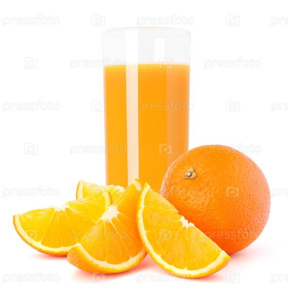 Стакан сока и апельсин