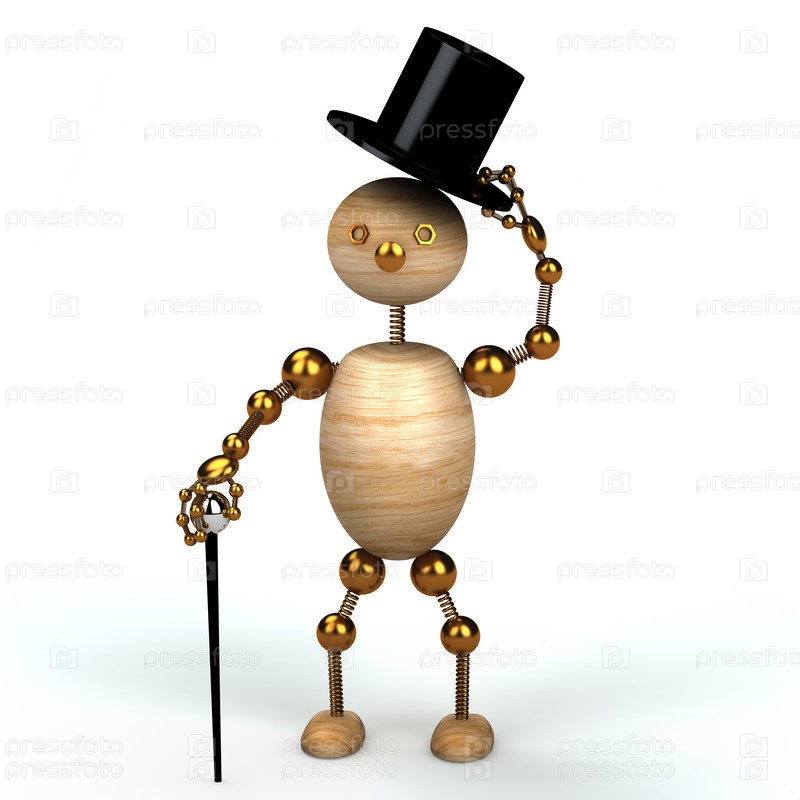 Иллюстрация с изображением деревянного человечка с черным котелком