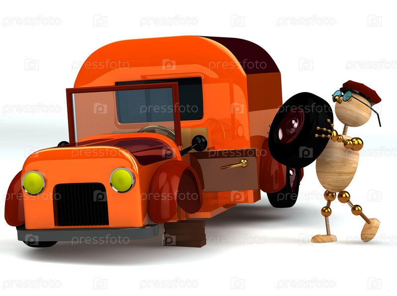 Иллюстрация с изображением деревянного человечка, меняющего колесо