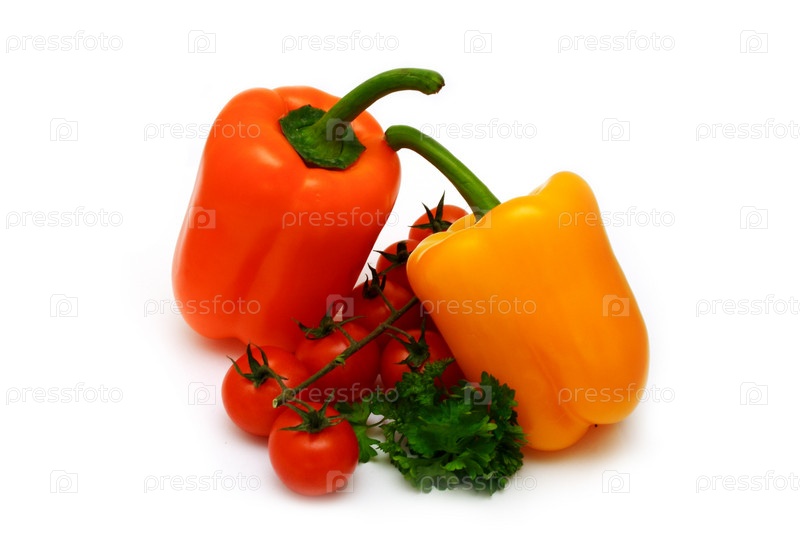 Перец, томаты и петрушка на белом фоне