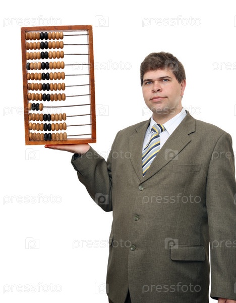 Бизнесмен с деревянными счетами на ладони