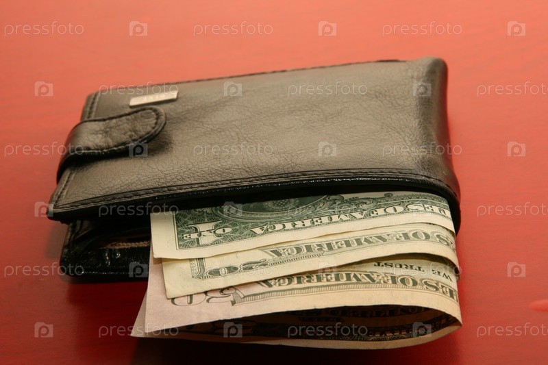 Кошелек с долларами на красном фоне