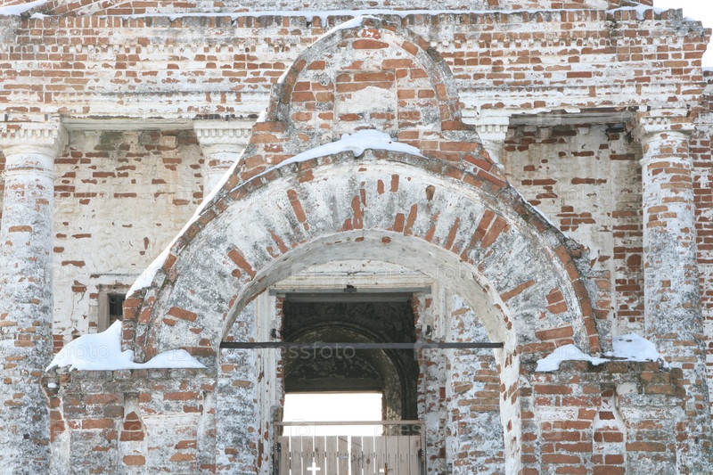 Вход в старый разрушенный храм Покрова Пресвятой Богородицы в Челябинской области