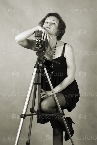 Изящная девушка с фотоаппаратом