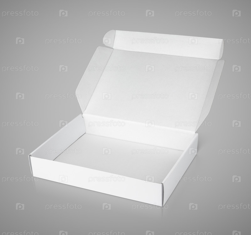 Открытая белая пустая картонная коробка для пиццы