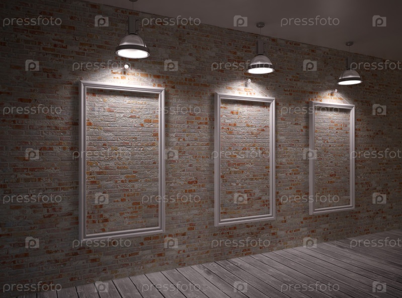 Светильники и рамы на стене в комнате