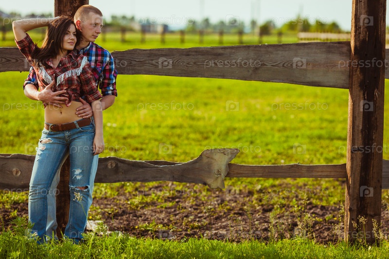 Пара на ферме возле забора