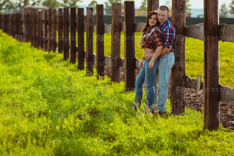 Пара на ферме возле забора