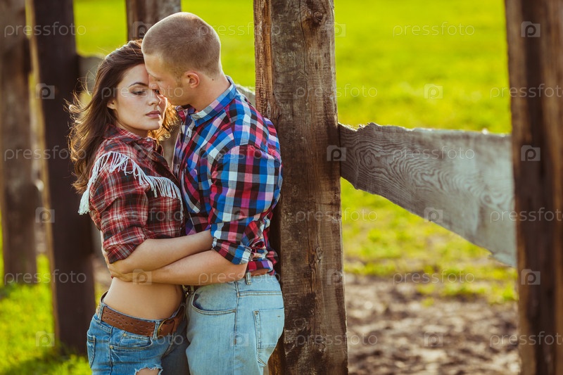 Пара на ферме возле забора