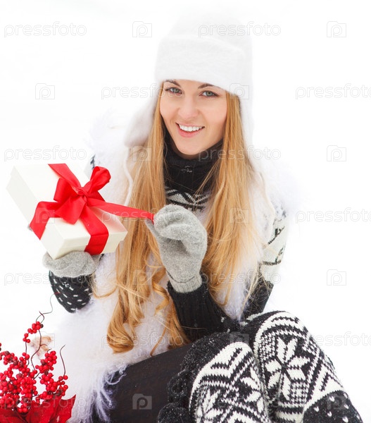 Молодая улыбающаяся женщина, держащая подарок
