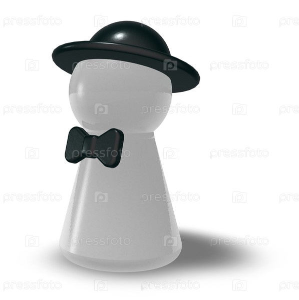 Фигура в шляпе и бабочке - 3d иллюстрация