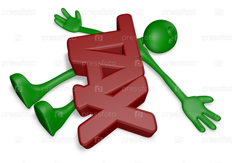 Мертвый зеленый человечек под словом TAX - 3d иллюстрация