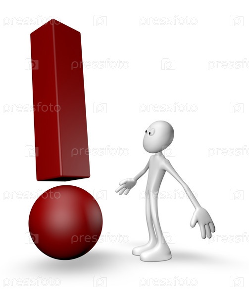 Человек и восклицательный знак - 3D иллюстрация