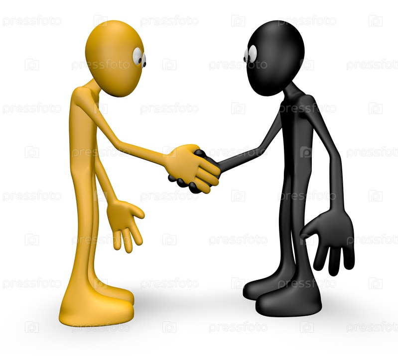 Маленькие человечки приветствуют друг друга - 3D-иллюстрация