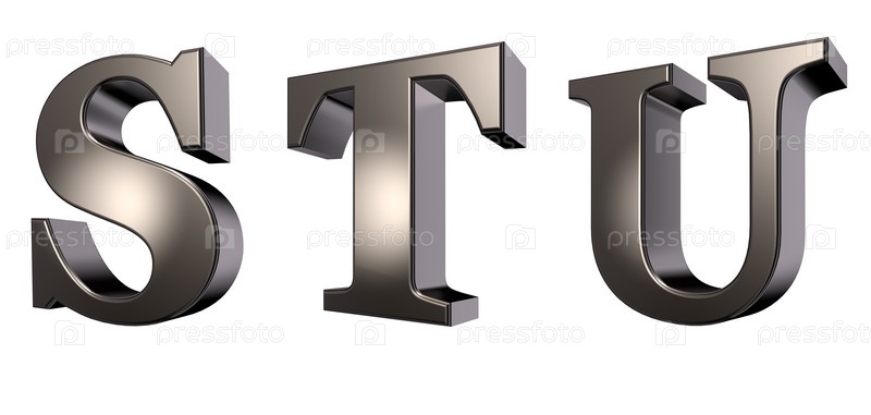 Металлические буквы STU на белом фоне. 3d иллюстрация