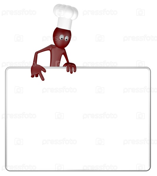 Повар и пустая белая доска - 3d иллюстрация
