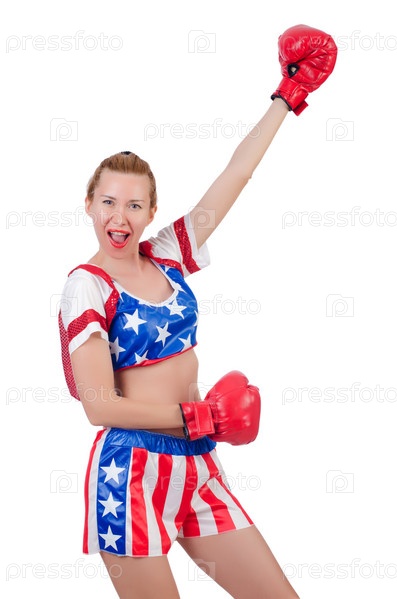 Женщина боксер, изолированная на белом фоне