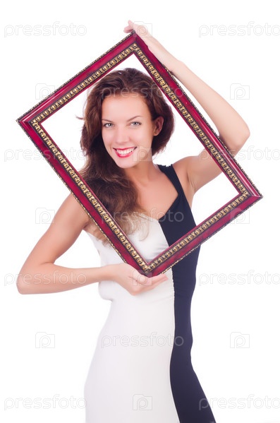 Женщина с рамой на белом фоне