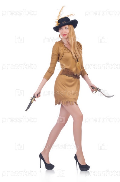 Женщина-пират, изолированная на белом