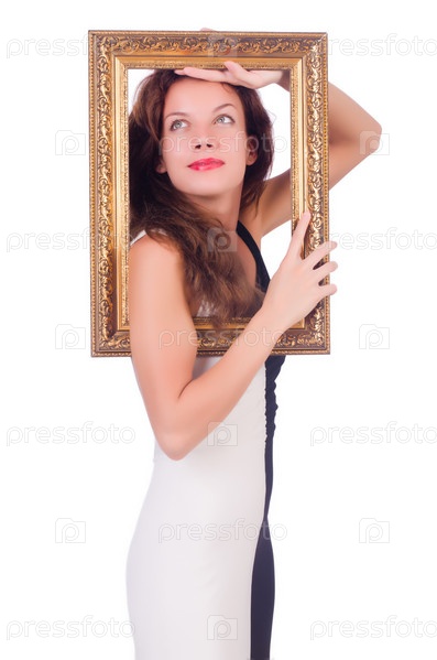 Женщина с рамой на белом фоне
