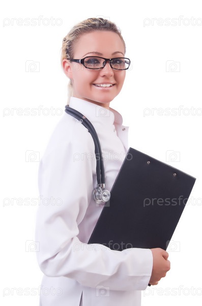 Женщина-врач, изолированная на белом фоне