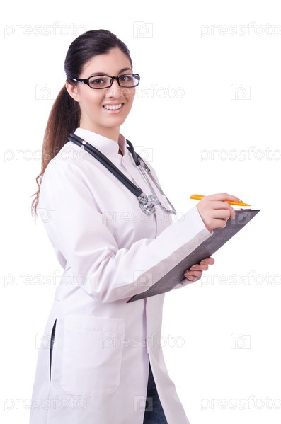 Женщина-врач, изолированная на белом фоне