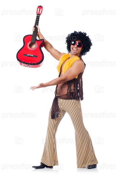 Гитарист, изолированный на белом