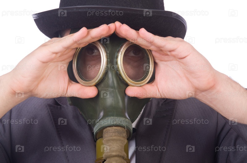 Бизнесмен в противогазе, изолированный на белом фоне