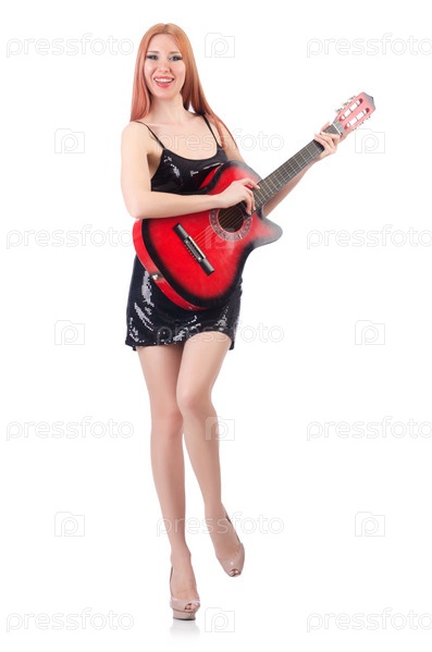 Гитаристка, изолированная на белом фоне