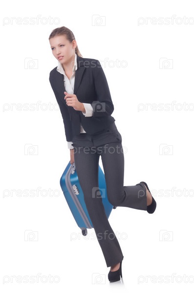 Бизнес-леди путешетвует, изолировано на белом фоне