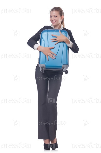 Бизнес-леди путешетвует, изолировано на белом фоне
