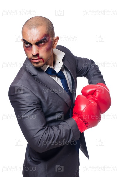 Избитый мужчина в боксерских перчатках