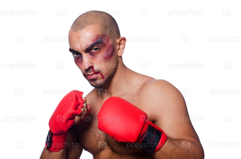 Избитый боксер, изолированный на белом фоне
