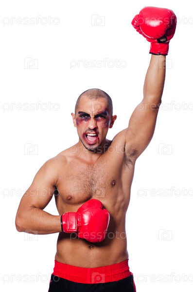 Избитый боксер, изолированный на белом фоне