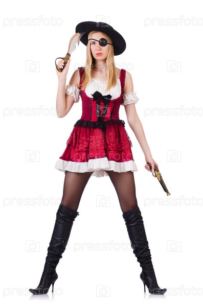 Женщина-пират, изолированная на белом