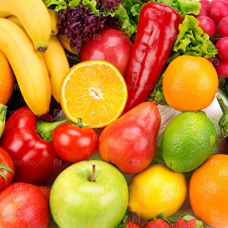 Яркий фон из спелых фруктов и овощей