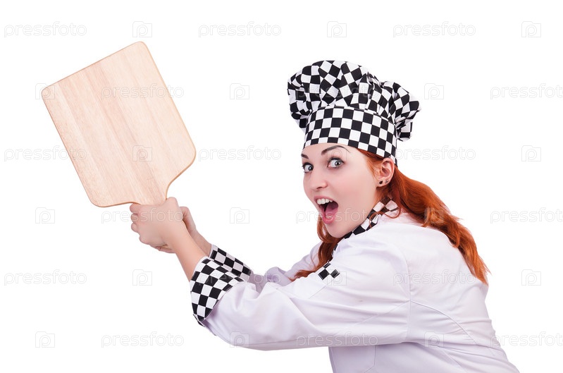 Женщина-повар, изолированная на белом фоне