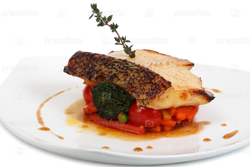 Жареная рыба с овощами