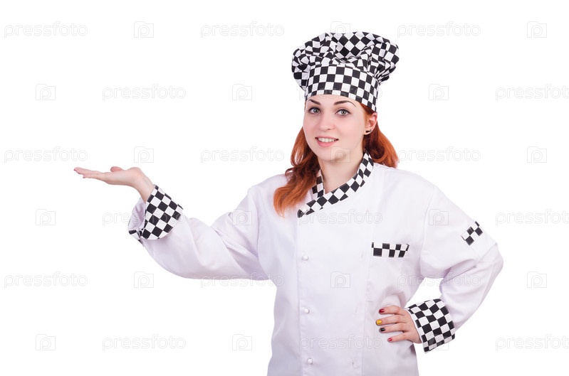 Женщина-повар, изолированная на белом фоне