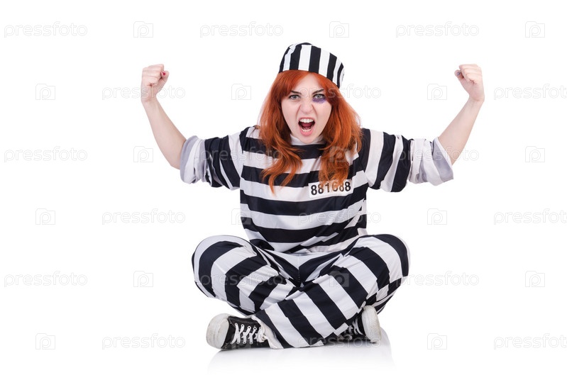 Заключенный в полосатой форме на белом фоне