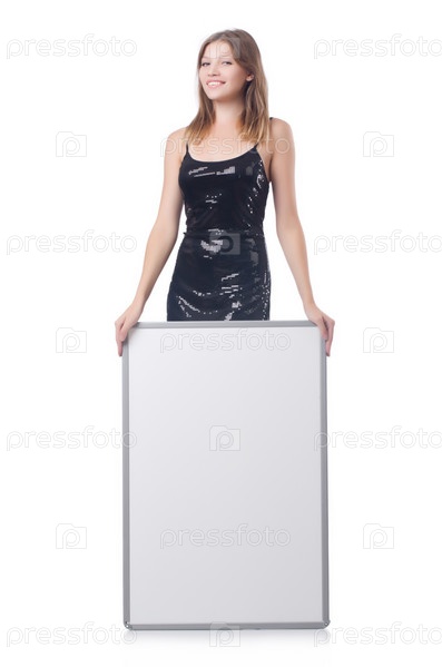 Молодая женщина с пустым баннером