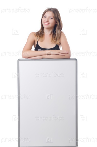 Молодая женщина с пустым баннером