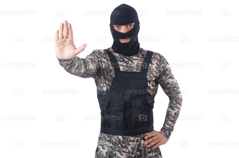 Солдат в камуфляже, изолированный на белом фоне