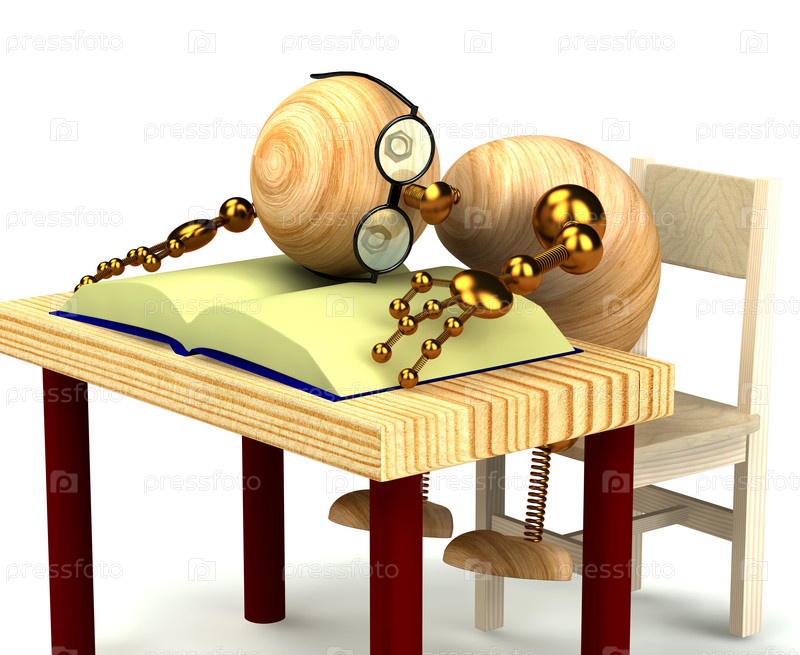 Деревянный человек спит с головой на книге, 3D