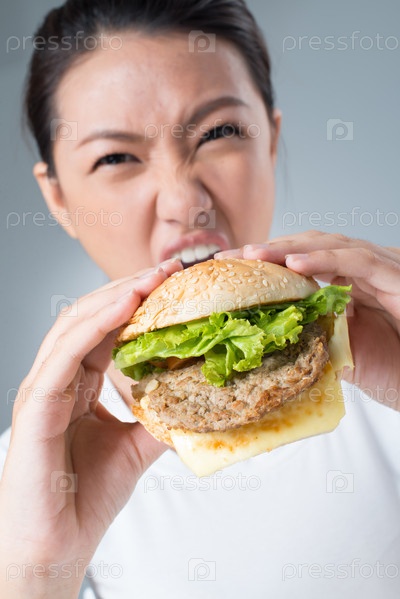 Девушка ест гамбургер