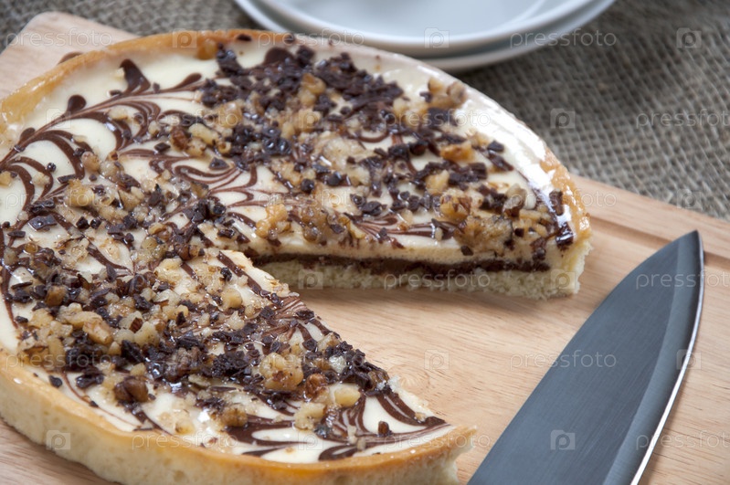 Орехово-шоколадный чизкейк на деревянной разделочной доске